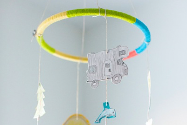 This chandelier is made out of your kids drawings! I know you mama’s get overwhelmed with all of the school projects.